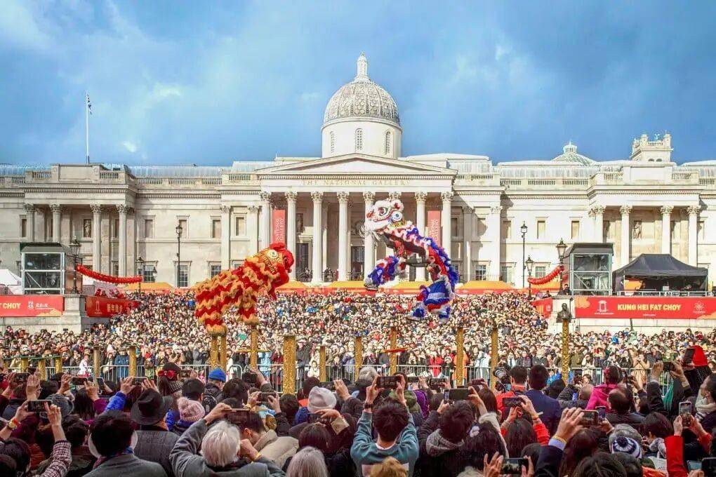 特拉法加广场 (Trafalgar Square)的庆祝活动通常以新春演讲和狮子亮眼仪式开启。随后便有机会欣赏传统的舞龙舞狮和充满乐趣的中国元素舞台表演,包括传统歌舞、武术、甚至是流行歌曲和一系列来自中国艺术家的精彩节目。