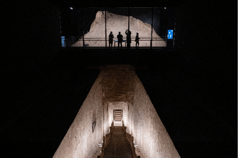 民众在山西太原北齐壁画博物馆,参观徐显秀墓墓道两壁壁画。 中新社记者韦亮 摄